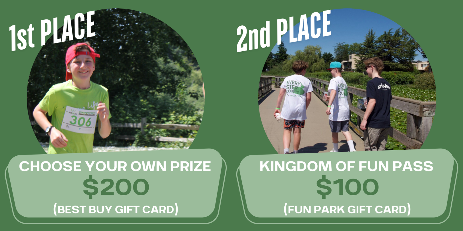 Walk wherever you are on June 6th (or whenever works best for you). All Walk participants who fundraise, regardless of whether you’re located in Prince George, Vanderhoof, or the Fraser Valley, are eligible for top prizes.